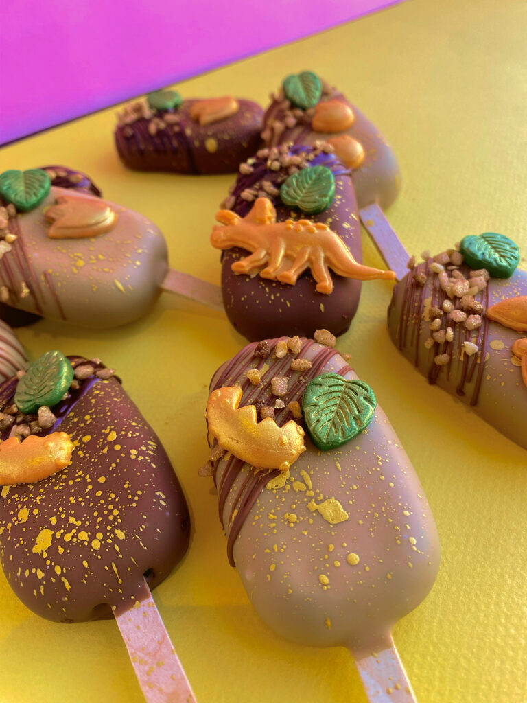 Te bestellen in 3 verschillende smaken, gedipt in een chocolade naar keuze, gedecoreerd met gepersonaliseerde decoratie aangepast aan het gewenste thema, zoals fondantprints, speelgoed en bijpassende suiker en/of chocolade sprinkles.